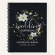 Elegant Black White and Gold Floral Wreath Wedding Notebook