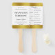 A graduation program template is on both sides of these elegant hand fans. The hand fans are gold and white. The text is black. You can edit the text as necessary.