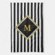 Elegant Black White and Gold Monogram Striped Kitchen Towel
