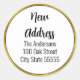 Elegant Black White and Gold Moving Announcement Classic Round Sticker