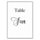 The table number is written with an elegant hand lettered style script. Black letters, white background. This table number is also available in rose gold.