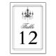 Elegant black and white chandelier Old Money formal wedding table number card. Elevate your wedding's ambiance with this sophisticated black and white chandelier table number card, embodying the essence of Old Money elegance. The design showcases a vintage-inspired black chandelier gracefully positioned above your personalized text, all framed within a refined triple black border that enhances its classic appeal. This exquisite card is sure to add a touch of timeless charm to your formal wedding setting.