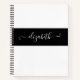 This black and white colour block notebook features an elegant spelling of a name, which you can personalize.