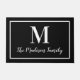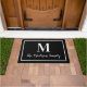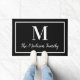Freshen up your home's entrance with this elegant custom monogram doormat in classic black and white colours. Note, colours can be modified. Personalize with your family's last name in script and a serif style monogram initial. Design includes a simple framed border.