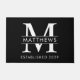 Elegant Black White Custom Monogram Name Doormat - The perfect way to welcome guests to your home. Shown in black and white , but other colours are available. Doormat features your Monogram and last name, and the year your home was established. This would make a wonderful wedding or housewarming gift. Part of a collection.