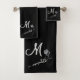 Elegant Black White Custom Monogram Name Flower Bath Towel Set