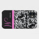 Black and White Damasked Pattern with customized monogram.. Hot Pink Ribbon.