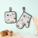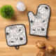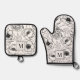 Elegant Black White Floral Monogram Oven Mitt & Pot Holder Set