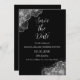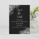 Announce your big day with timeless elegance using this black and white floral Save the Date wedding card. Featuring hand-drawn white botanical illustrations on a bold black background, with elegant calligraphy and modern serif fonts, this design offers a perfect balance of simplicity and sophistication.