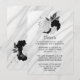 Elegant white and black flowers with grey leaves on silver grey marble botanical details enclosure card.