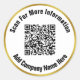 You can replace the url for the QR code. There are two lines of black display text that you can edit to show a custom message. These elegant stickers have black text in a white circle. The faux (not foil) gold border is an artistic rendering.