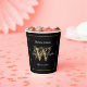 Elegant Black White Gold Wedding Monogram Name Paper Cups