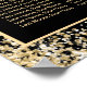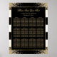 Elegant black and white striped seating chart for 12 tables featuring wedding details on a black and white background adorned with gold confetti. Matching items available.