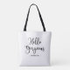 An elegant script typography tote bag with the words "Hello Gorgeous" Personalize it for yourself or as a gift. Designed for you by Blackberry Boulevard.