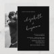 Keep it simple and stylish with this Elegant Minimalist Black and White Wedding Invitation with Photo. Featuring modern typography, calligraphy script and your photo, this design is perfect for any season—spring, summer, or fall. A timeless blend of traditional and contemporary style, this invitation suits any wedding theme. Easily customize with your own details to create a unique keepsake for the bride and groom. A chic and sophisticated choice for your special day!