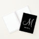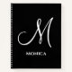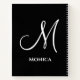 simple modern black and white monogram notebook, custom black and white script notebook