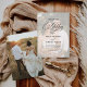 This elegant Wedding Invitation features a sweeping script calligraphy text paired with a classy serif & modern sans font in black, with a photo overlay on the front and a second photo on the back