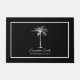Add your own special touch to this simply elegant design featuring your family name or phrase and established date in white text and palm tree framed in a white border over a black background.