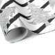 Beautiful Christmas design. Faux silver glitter Christmas tree pattern, white and black stripe.