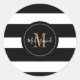 Elegant Black White Stripes Gold Monogram Name Classic Round Sticker