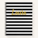 Personalize with your name (or other text) in faux (not foil) gold script on a black and white striped notebook.
