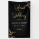 Add this Elegant Hanging Wedding Banner to your Reception Accessories. Designed with Gold and White text on a black background with gold coloured leaves and highlights. The text includes: Welcome to our Wedding, The Bride and Groom's Names and Wedding Date. To personalize, simply insert your details into our easy template, replacing the sample text. Be sure to view the entire Elegant Black and White, With Gold Wedding Collection for matching stationery and accessories.