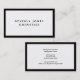Un élégant carte de visite avec un arrière - plan blanc, du texte noir et une bordure noire.