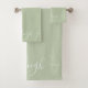 Une serviette verte à la sauge élégante et tendance, avec un nom de script blanc et de jolis swashes sur les lettres. Personnalisez avec votre nom. Pour une ambiance urbaine moderne.