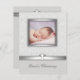 Elégant blanc dentelle et argent photo cadre bébé baptême ou modèle d'invitation à baptiser. Cette belle invitation à baptiser des photos en gris et blanc argenté est facilement customisée pour votre événement en choisissant simplement le bouton "Customisez-le !" pour commencer à ajouter vos photos et détails de l'événement, le style de police, la taille et la couleur de la police et le libellé. Veuillez noter que tous les modèles d'invitation que vous trouverez sur Zazzle sont des graphiques imprimés sans bijoux, arcs, surélevés, gaufrés, ou des pièces ou pièces ajoutées.