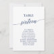 Ces élégantes cartes marines bleues numéro 16 sont parfaites pour un mariage simple. Le design neutre présente une carte minimaliste décorée de typographie romantique et fantaisiste. La carte s'imprime à l'avant et à l'arrière (double face).