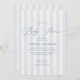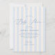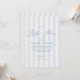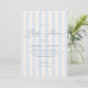 Célébrez les parents à être avec cette Elégante Bleue Stripes Boy Baby shower Invitation. Avec ses rayures bleues classiques et son écriture moderne, ce design intemporel est parfait pour accueillir un bébé dans le style. Personnalisez avec les détails de l'événement pour créer un invitation chic et réfléchi pour les amis et la famille. Idéal pour les douches traditionnelles, les fêtes de jardin ou les réunions élégantes qui mettent en avant un thème raffiné et charmant de bébé garçon.