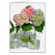 Hydrangées classiques roses, bleues et vertes dans les jarres de Mason
