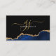 A unique version of an abstract blue black and gold foil agate geode makeup artist business card featuring an elegant gold script initial and script signature. Unique, modern and stylish.