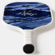 Elegant Blue Agate Silver Glitter Monogram Name Pickleball Paddle