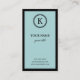 These elegant business cards feature a blue background and black border on the front, and black background on the back. The circle on the the top is for your initial/monogram. Customize to add/remove fields or adjust alignment of monogram as needed.
