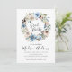Our stunning Blooming Beauty graduation party invitations features "Grad Party" in a modern calligraphy script surrounded by a floral wreath of antique white and indigo blue watercolor flowers with muted green leaves. The reverse side of the invitation features a deep blue watercolor background. Personalize the floral graduation party invitations by adding the graduate's name and party details.