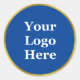 Elegant Blue and Faux Gold Your Logo Here Classic Round Sticker