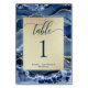 Elegant table number with gorgeous blue and gold agate print. Gorgeous Agate crystal design in a beautiful blend of blue and navy tones with gold faux glitter. Personalize with your name(s) and event. Ideal for weddings and special events.