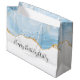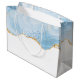 A large gift bag with a beautiful icy blue agate design with faux gold glitter accents.