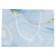 A large gift bag with a beautiful icy blue agate design with faux gold glitter accents.