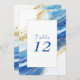 Elevate your glamourous celebration with this blue and gold table number card, artfully designed for elegant watercolor events and luxury banquets. Rich, refined shades inspired by the coastal ocean cascade across the card, complemented by sophisticated gold splatter accents that add a touch of luxury. The stylish, modern typography and navy and gold formal palette bring a sense of grandeur to each table, seamlessly blending with elegant dinner table settings. Perfect as a sophisticated event seating chart for weddings, receptions, and luxury gatherings, this card guides your guests with both refinement and style. Whether arranging a stylish table seating display or enhancing a lavish banquet, this table card ensures every detail feels coordinated, upscale, and inviting.