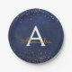 Elegant Blue and Gold Foil Confetti Monogram Paper Plate