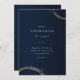 An elegant Happy Hour invitation design by Stacey Meacham featuring a blue textural background and gold cocktail rings. Perfect for business or personal events.