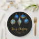 Elegant Blue and Gold Ornament Christmas Paper Plate