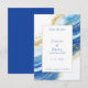 This elegant blue and gold watercolor wedding save the date features swirls of deep blue, delicate gold accents, and soft splashes of watercolor. The refined layout and classic serif font add a timeless touch, perfect for sophisticated weddings. Ideal for couples looking to set a modern, luxurious tone for their special day.