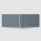 Custom-designed steel blue and silver foil wedding guestbook featuring modern elegant foliage wreath monogram with personalized couple's initials, name, and wedding date.