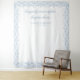 Add a personalized tapestry backdrop to your elegant blue and white coastal chic or regency era wedding with this photo banner. Stunning border is perfect for an old money or vintage minimalist dusty blue event venue in place of a traditional wedding arch. Use this wedding tapestry as a photo backdrop at the reception and personalize the wedding quote that reads happily ever after begins here. Designed by Simple Desert Designs. Message us for customized colours in this design to match your exact colour palette.