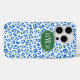 Elegant Blue And White Leopard Print Monogrammed Case-Mate iPhone Case