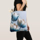 A captivating digital artwork featuring three elegant tulips in shades of blue and white. The intricate detailing and soft gradients create a delicate and modern aesthetic, perfect for nature and floral art enthusiasts