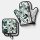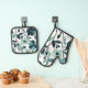 Elegant Blue Aqua Floral Kitchen Oven Mitt Set